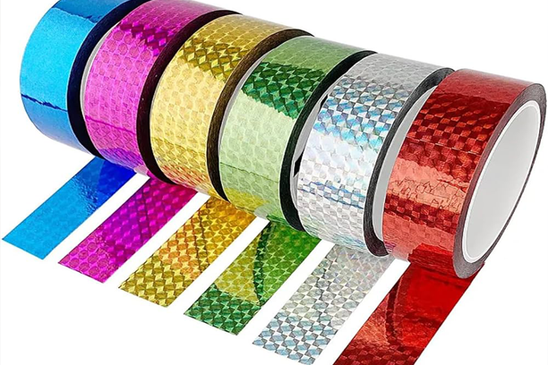 Holographic tape is a type of adhesive tape that features a holographic or iridescent surface pattern. It is typically made from a thin, flexible plastic film coated with a pressure-sensitive adhesive on one side.